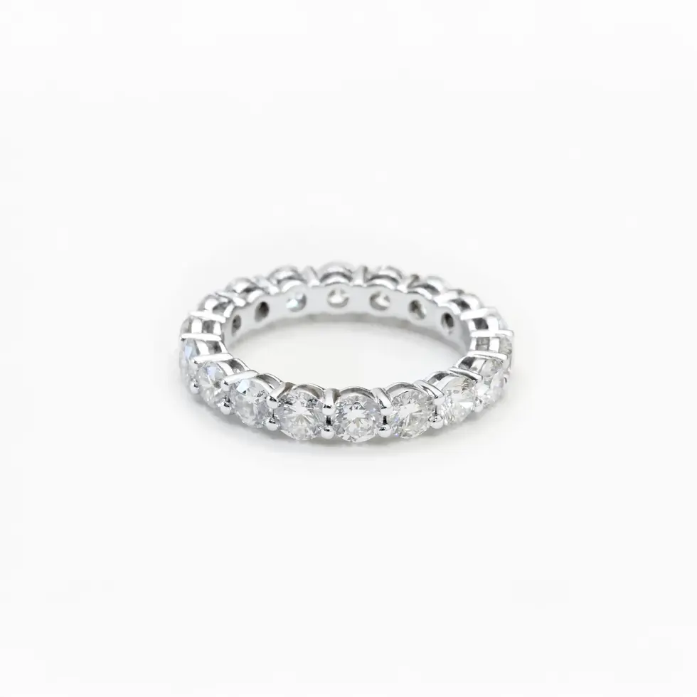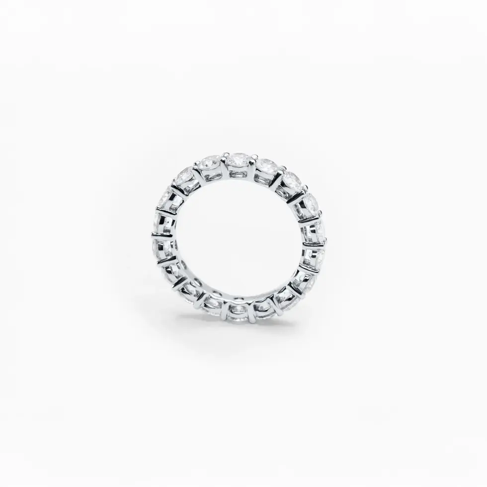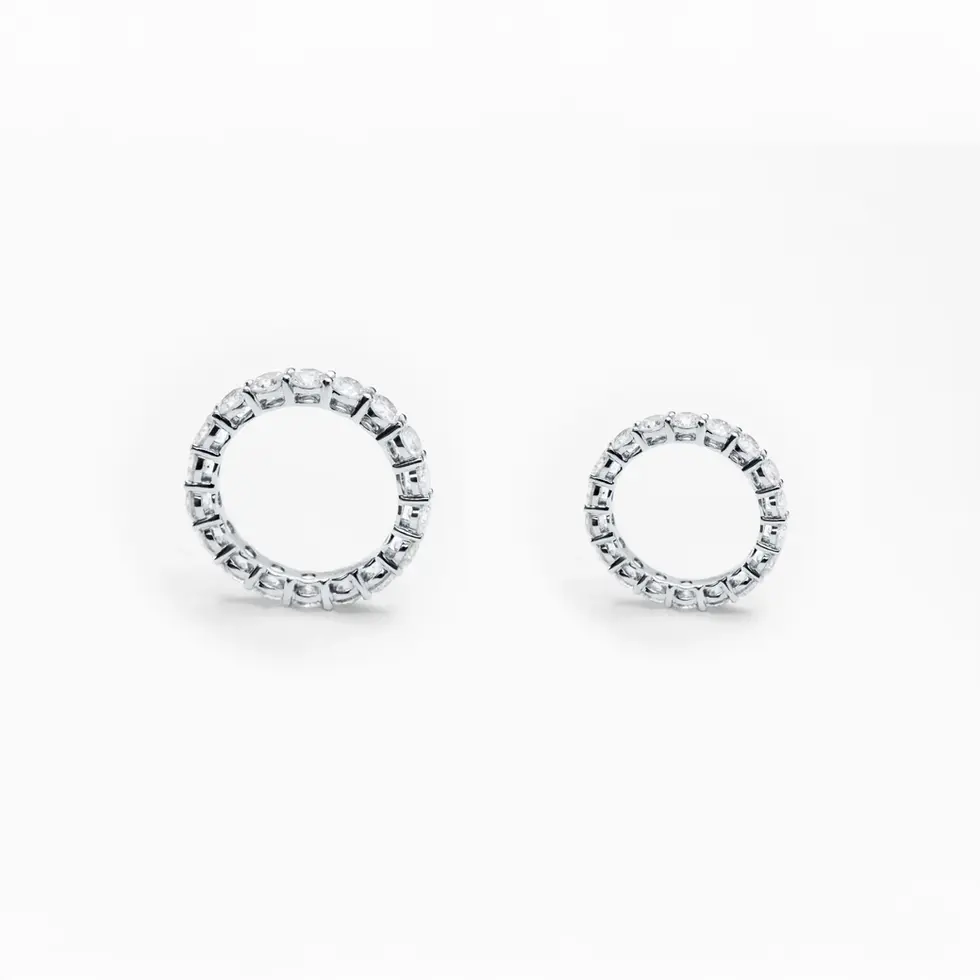 – Two eternity bands worn as a set, doubling the brilliance and presence on the hand