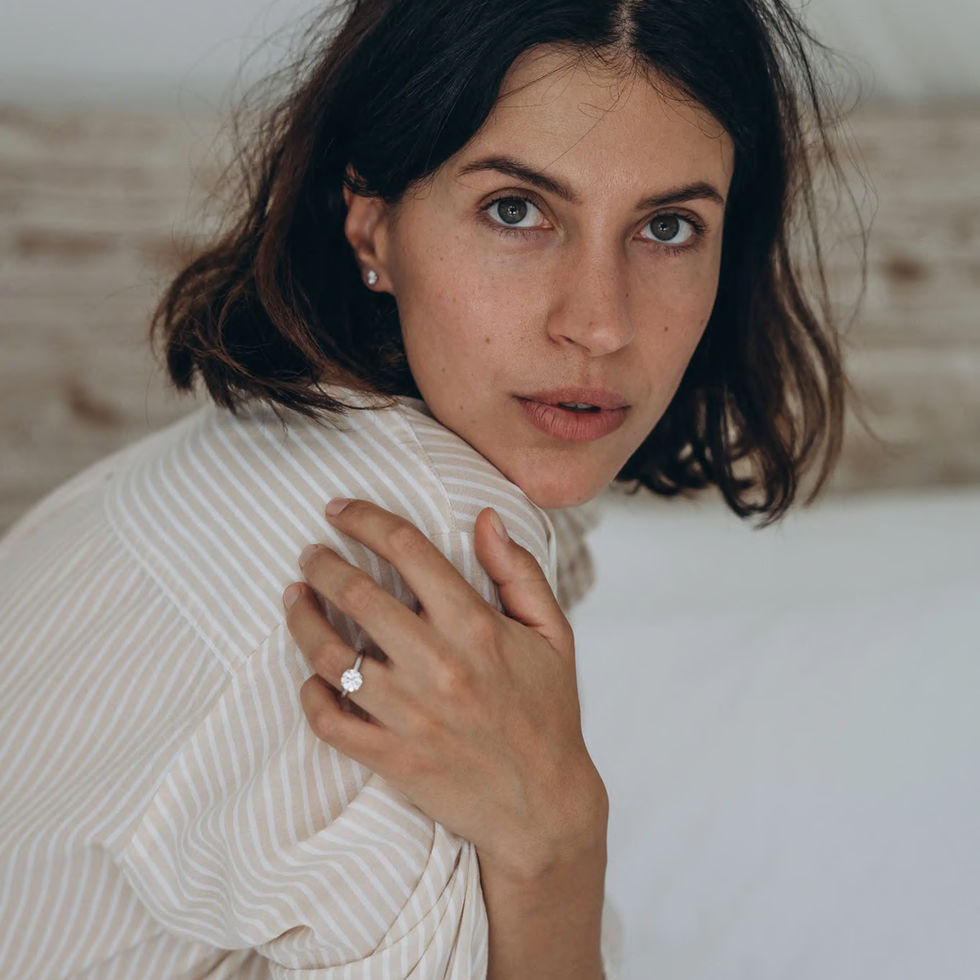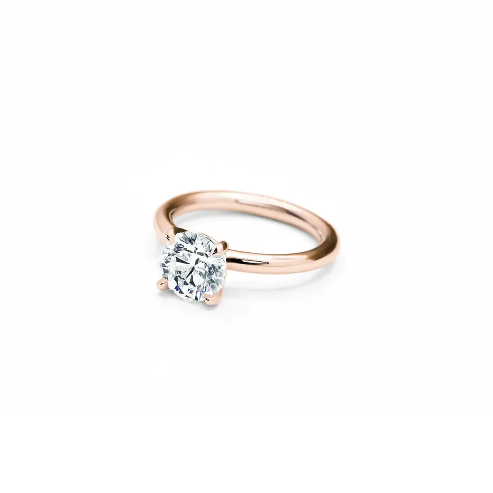 Vira brings together tradition and intention. A round brilliant diamond is held in a classic four-prong high setting, designed to elevate the stone and let light flow through effortlessly. The softly tapered yellow gold band creates a silhouette that feels graceful yet grounded. Vira is elegant, luminous, and timeless—made to be worn every day, and kept forever.